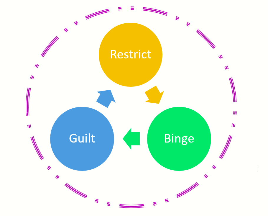 Restrict. Binge. Guilt. Repeat. has been the story of my life. For as long as I can remember, I have struggled with my weight. As a teen I did Jenny Craig and the “Cabbage Soup Diet”. It is just as awful as it sounds. I look back on those photos from high school and am utterly dismayed at how body dysmorphia set the stage for a lifetime of dieting, and failure at dieting.